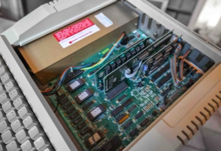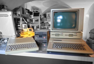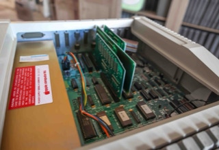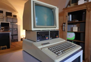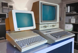 Auf den Apple II Plus folgte 1983 der Apple IIe, ein kostengünstigeres, aber leistungsstärkeres Gerät, das neuere Chips verwendete, um die Anzahl der Komponenten zu reduzieren und neue Funktionen hinzuzufügen, wie die Anzeige von Groß- und Kleinbuchstaben und einen standardmäßigen 64-KB-RAM. Das RAM des IIe war, wie beim 48-KB-Apple II Plus, mit einer Sprachkarte konfiguriert; das Gerät hatte keinen Steckplatz 0, sondern einen zusätzlichen Steckplatz, der für die meisten praktischen Zwecke den Platz von Steckplatz 3 einnahm, dem am häufigsten verwendeten Steckplatz für 80-Steckplatz-Karten im II Plus.