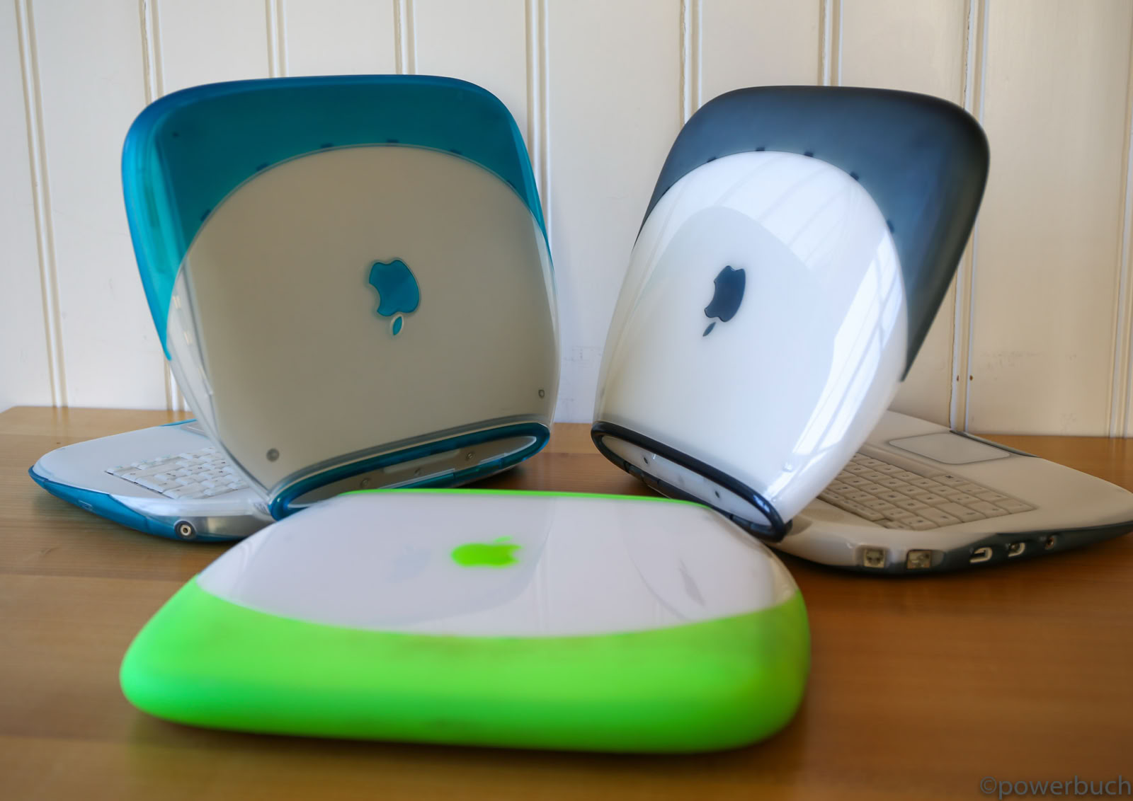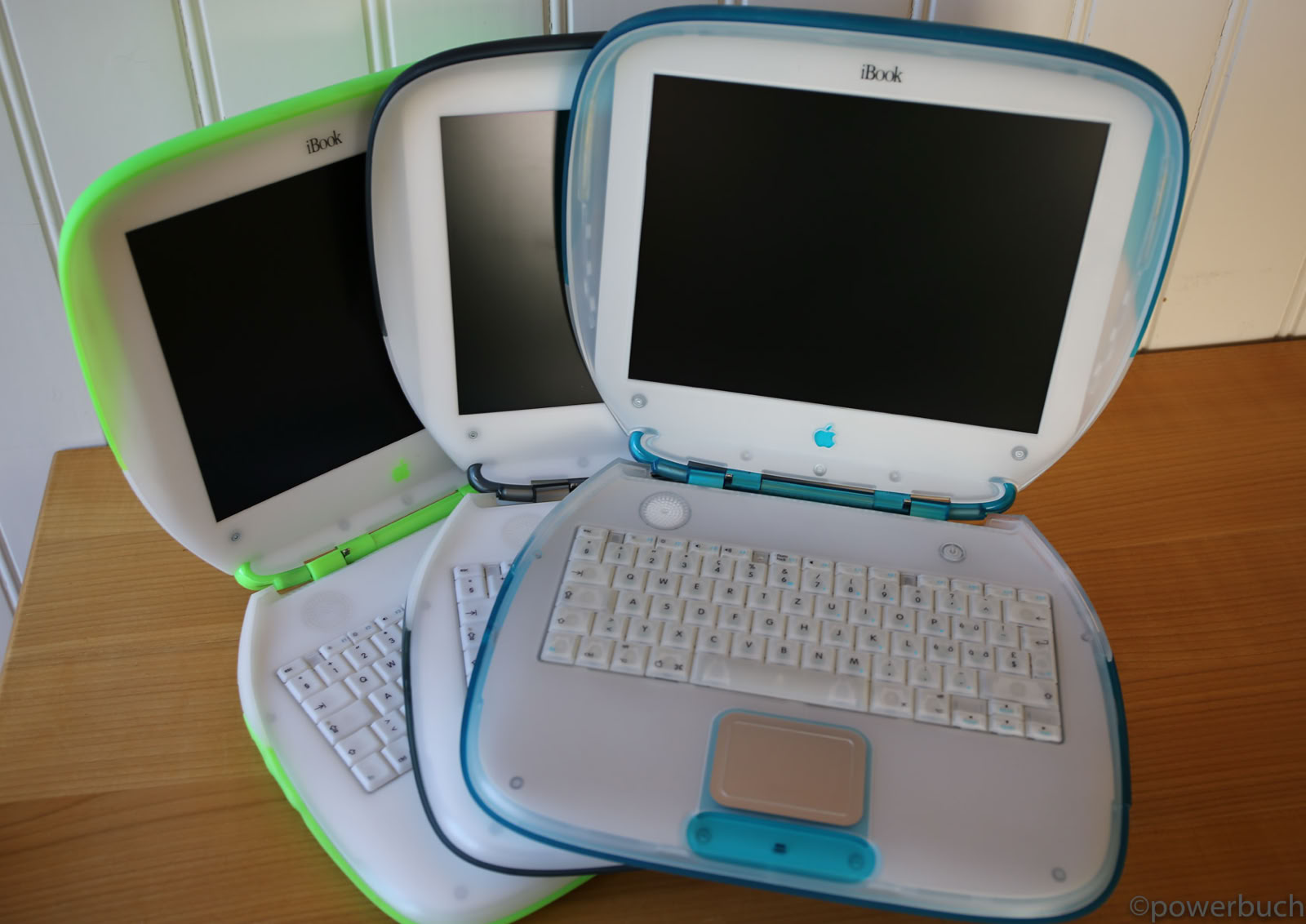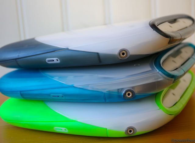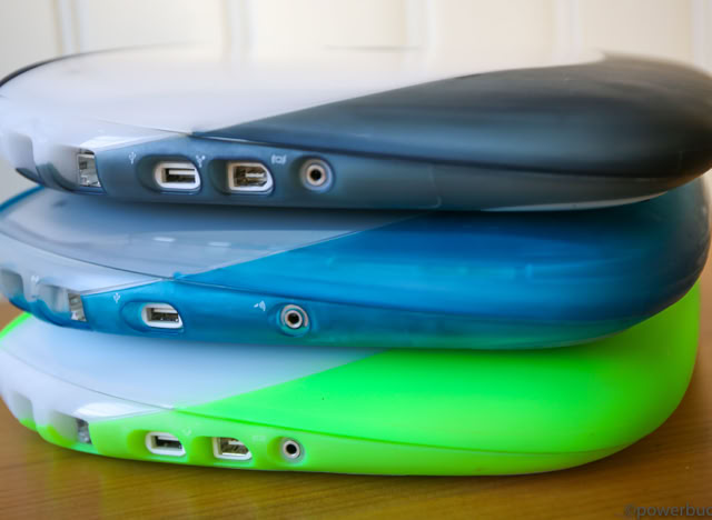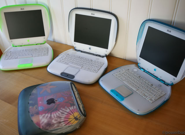 Das iBook kam in zwei Hauptmodellen und zwei Revisionen heraus. Das ursprüngliche iBook wurde im Juli 1999 angekündigt. Es wurde in den Farben Blueberry und Mandarine mit einem 300 MHz PowerPC G3-Prozessor, 32 MB RAM, einer 3,2 GB Festplatte, einem CD-ROM-Laufwerk mit Schubladeneinzug, einem 12-Zoll-LCD-Display mit 800 x 600 Pixeln und aktiver Matrix, einem 56k-Modem, einem USB-Anschluss, Ethernet, drahtlosem Netzwerk und einer Batterie mit einer Laufzeit von sechs Stunden angeboten. Der Preis betrug 1.600 $. Das war weit entfernt vom heutigen 999 $ teuren MacBook Air, aber damals war es volle 900 $ billiger als das Powerbook G3 der untersten Preisklasse. Sieben Monate später, im Februar 2000, fügte Apple der Produktpalette ein „Special Edition“-Modell hinzu. Für 1.799 US-Dollar wurde die CPU des iBook SE auf 366 MHz gesteigert, der RAM auf 64 MB verdoppelt und die Festplatte auf 6 GB fast verdoppelt. Das SE ging auch auf Bedenken hinsichtlich der grellen Farben des bestehenden Modells ein und wurde in Apples professioneller Farbe „Graphit“ angeboten, passend zum iMac DV SE und dem Power Mac G4. Nach über einem Jahr auf dem Markt erhielt das iBook im September 2000 endlich ein dringend benötigtes Upgrade. Die Basismodelle wurden auf 366 MHz Power PC 750 CX (G3)-CPUs aufgerüstet, die trotz ihrer höheren Taktfrequenzen nur geringfügig schneller waren als die 300 MHz PowerPC 750-CPUs, die sie ersetzten. Das aktualisierte iBook enthielt standardmäßig 64 MB RAM, hatte eine verbesserte Grafikkarte, verdoppelte den Videospeicher auf 8 MB, erhöhte die Laufwerksgröße auf 10 GB, fügte einen Firewire-Anschluss und einen Composite-Video-Ausgang hinzu und senkte den Preis um 100 $ auf 1.499 $. Die neuen iBooks kamen in einem tieferen Indigoblau und einem fast neonartigen KeyLime-Grün. Das SE-Modell wurde zur gleichen Zeit aktualisiert und verbesserte das Basismodell durch Hinzufügen eines 466 MHz PowerPC 750cx (G3) und eines DVD-Laufwerks. Das SE wurde sowohl in Graphit als auch in KeyLime angeboten. Der Preis blieb bei 1.799 $.