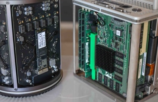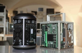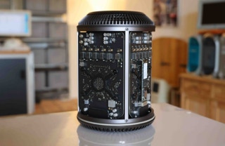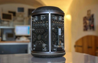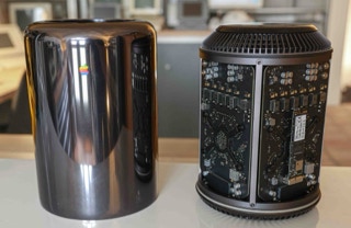 Apple hatte 2013 einen komplett neu gestalteten Mac Pro vorgestellt. Der Mac Pro 2013 wurde mit einem überarbeiteten Gehäusedesign vorgestellt: einem polierten silbernen Aluminiumzylinder, der um einen zentralen Wärmeableitungskern herum gebaut war und von einem einzelnen Lüfter belüftet wurde, der Luft von unter dem Gehäuse durch den Kern hindurch und oben aus dem Gehäuse heraus zog.