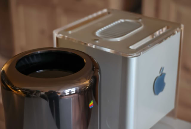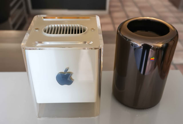 Apple hatte 2013 einen komplett neu gestalteten Mac Pro vorgestellt. Der Mac Pro 2013 wurde mit einem überarbeiteten Gehäusedesign vorgestellt: einem polierten silbernen Aluminiumzylinder, der um einen zentralen Wärmeableitungs-kern herum gebaut war und von einem einzelnen Lüfter belüftet wurde, der Luft von unter dem Gehäuse durch den Kern hindurch und oben aus dem Gehäuse heraus zog. Der Mac Pro verfügte über eine grundlegend neu gestaltete Konfiguration der Anschlüsse, mit einem HDMI 1.4-Anschluss, zwei Gigabit-Ethernet-Anschlüssen, sechs Thunderbolt 2-Anschlüssen, vier USB 3-Anschlüssen und kombinierten digitalen optischen Mini-TOSlink-/analogen 1⁄8"-Stereo-Minibuchsen für Tonein- und -ausgang. Die Thunderbolt 2-Anschlüsse unterstützen bis zu 36 Thunderbolt-Geräte (sechs pro Anschluss) und konnten bis zu 3 gleichzeitige 4K-Displays unterstützen. Dieses Design erforderte 2 GPUs, um die 7 Displayausgänge (HDMI und 6 Thunderbolt) zu unterstützen. Der MacPro machte es überflüssig, Festplatten auszutauschen, indem er auf die vier 3,5-Zoll-Laufwerksschächte zugunsten eines proprietären PCIe-Flash-Speichers verzichtete. Außerdem war es nicht mehr möglich, PCIe-Karten intern hinzuzufügen, sodass der RAM das einzige zu erweiternde Teil war. Das E/A-Panel wurde beleuchtet, wenn das Gerät erkannte, dass es bewegt wurde, damit der Benutzer die Anschlüsse leichter erkennen konnte.