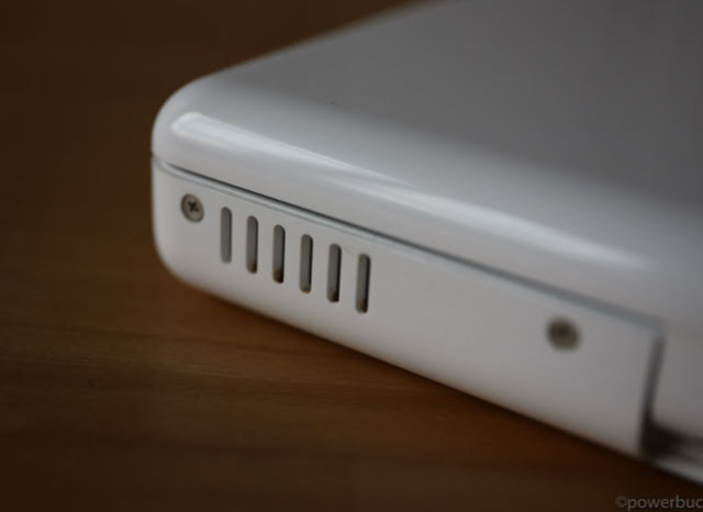 Obwohl das MacBook dünner als sein Vorgänger, das iBook G4, war es aufgrund seines Breitbilddisplays breiter als das 12-Zoll-Modell. Außerdem war das MacBook eines der ersten (das erste war das MacBook Pro), das Apples MagSafe-Stromanschluss übernahm, und es ersetzte den Mini-VGA-Displayanschluss des iBooks durch einen Mini-DVI-Displayanschluss. Der diskrete Grafikchip des iBooks wurde zunächst durch eine integrierte Intel GMA-Lösung ersetzt, die neuesten Versionen des MacBooks wurden jedoch mit der leistungsstärkeren Nvidia GeForce 9400M und später der 320M aufgerüstet.