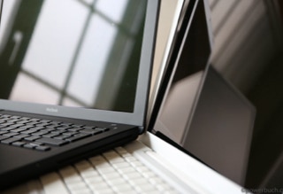 Obwohl das MacBook dünner als sein Vorgänger, das iBook G4, war es aufgrund seines Breitbilddisplays breiter als das 12-Zoll-Modell. Außerdem war das MacBook eines der ersten (das erste war das MacBook Pro), das Apples MagSafe-Stromanschluss übernahm, und es ersetzte den Mini-VGA-Displayanschluss des iBooks durch einen Mini-DVI-Displayanschluss. Der diskrete Grafikchip des iBooks wurde zunächst durch eine integrierte Intel GMA-Lösung ersetzt, die neuesten Versionen des MacBooks wurden jedoch mit der leistungsstärkeren Nvidia GeForce 9400M und später der 320M aufgerüstet.