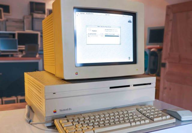 Der Mac II war der ultimative erweiterbare Mac. Basierend auf dem neuen 68020-Prozessor war der Mac II der erste 32-Bit-Mac (obwohl er nicht „32-Bit-rein“ war). Der Mac II hatte 6 Nubus-Steckplätze, die eine Reihe verschiedener Erweiterungskarten von Apple und Drittanbietern ermöglichten. Der Mac II war der erste Mac mit Farbfähigkeiten. Es konnte eine Grafikkarte installiert werden, die bis zu 16,7 Millionen Farben verarbeiten konnte! Der Mac II wurde mit einem 800 KB-Diskettenlaufwerk und einem 40 MB-internen SCSI-Festplattenlaufwerk geliefert. Der Mac IIx war im Wesentlichen derselbe wie ein Mac II, hatte aber einen 68030-Prozessor mit einer 68882-FPU. Der Mac IIfx war der schnellste Mac, der zu dieser Zeit jemals gebaut wurde. Der IIfx wurde in einem Mac II-ähnlichen Gehäuse geliefert und konnte bis zu zwei Superdrives und eine interne SCSI-Festplatte aufnehmen. Der IIfx enthielt außerdem eine Reihe proprietärer ASICs, die die Maschine noch weiter beschleunigen sollten. Diese erforderten speziell für den IIfx geschriebene Software, um mit Höchstgeschwindigkeit zu laufen, aber so oder so war es ein extrem leistungsstarker Computer.