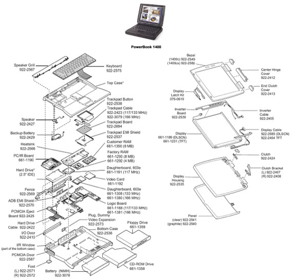 Dazu gehört eine gründliche Reinigung des Mainboards mit normalem Wasser und Küchenreiniger. Alle Kondensatoren müssen ausgetauscht werden. Das gilt oft auch für die Netzteile; die Rifa-Kondensatoren müssen in jedem Fall ersetzt werden. Man möchte diese unangenehme Überraschung nur einmal erleben. Die Backup-Batterien müssen entfernt werden, selbst bei den Powerbooks, die oft kleine, flache, auslaufgefährdete Batterien eingebaut haben. Bei den Powerbooks müssen ausserdem die Nickelbatterien aus dem Batteriefach entfernt werden. Die Kunststoffgehäuse stellen eine Herausforderung dar, da der Kunststoff nach 30 Jahren spröde und brüchig geworden ist. Bei den Powerbooks sind auch die Scharniere hart geworden, sodass die Schrauben im Kunststoff brechen. Vergilbter Kunststoff lässt sich mit Wasserstoffperoxid und UV-Licht auffrischen, der dunkle Kunststoff der Powerbooks jedoch nicht. Die farbigen TFT-Displays können Essigsäure-Syndrom entwickeln. Deshalb ist mein Zimmer klimatisiert, bei 18–22 Grad und 35 % Luftfeuchtigkeit. Ich bin also ständig auf der Suche nach Ersatzteilen.