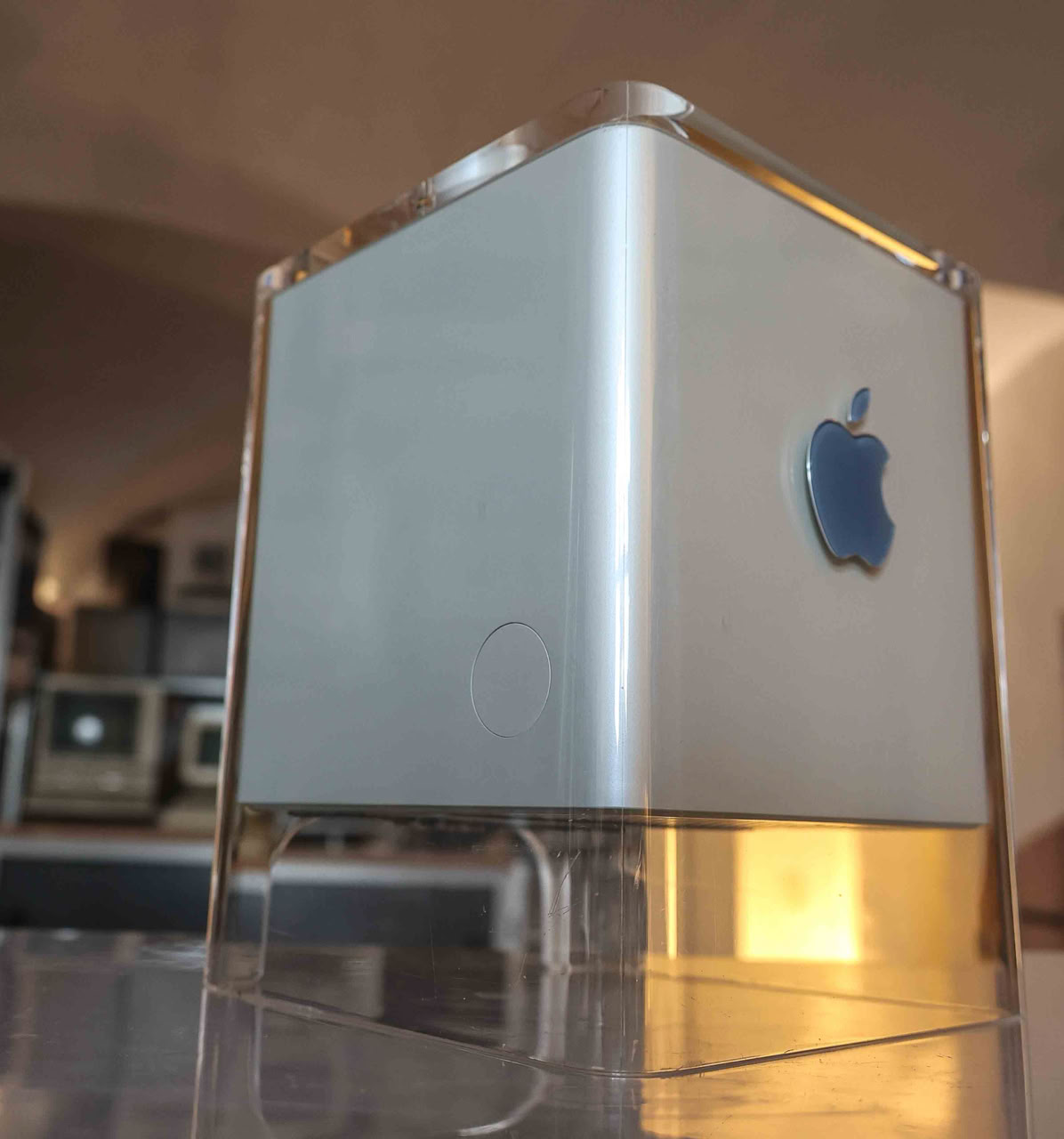Ein weiteres Gerät mit Sonderstatus ist der Power Macintosh G4 Cube. Er ist, wie so viele Apple-Produkte, ein Design-Meisterwerk: ein lüfterloser Rechner in einem durchsichtigen Gehäuse, begleitet von einem passenden Display. Ein Objekt, das eher wie Kunst als wie ein Computer wirkte. Zu erwähnen ist, dass der Cube mit einem Sensor ausgestattet war, so dass der Startknopf nicht berührt werden musste. Eine schöne Technik in perfektem Design.