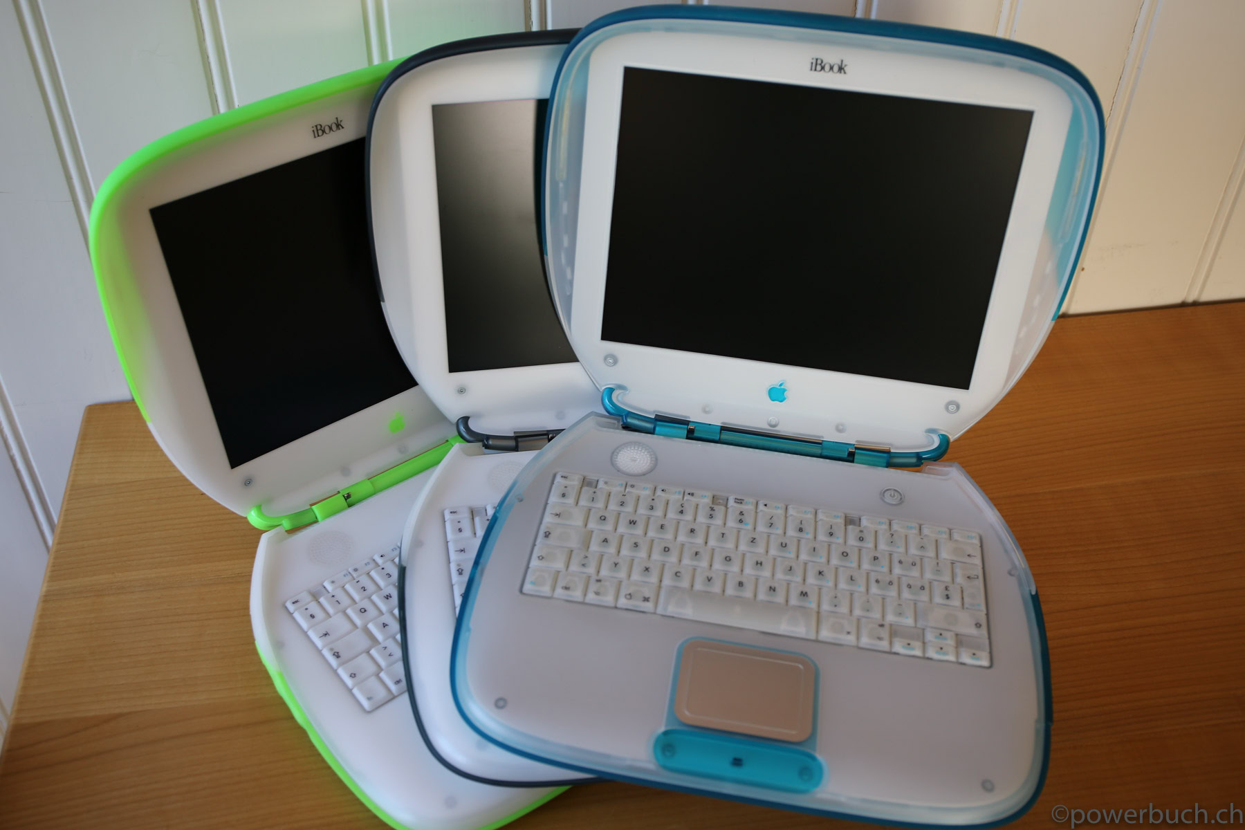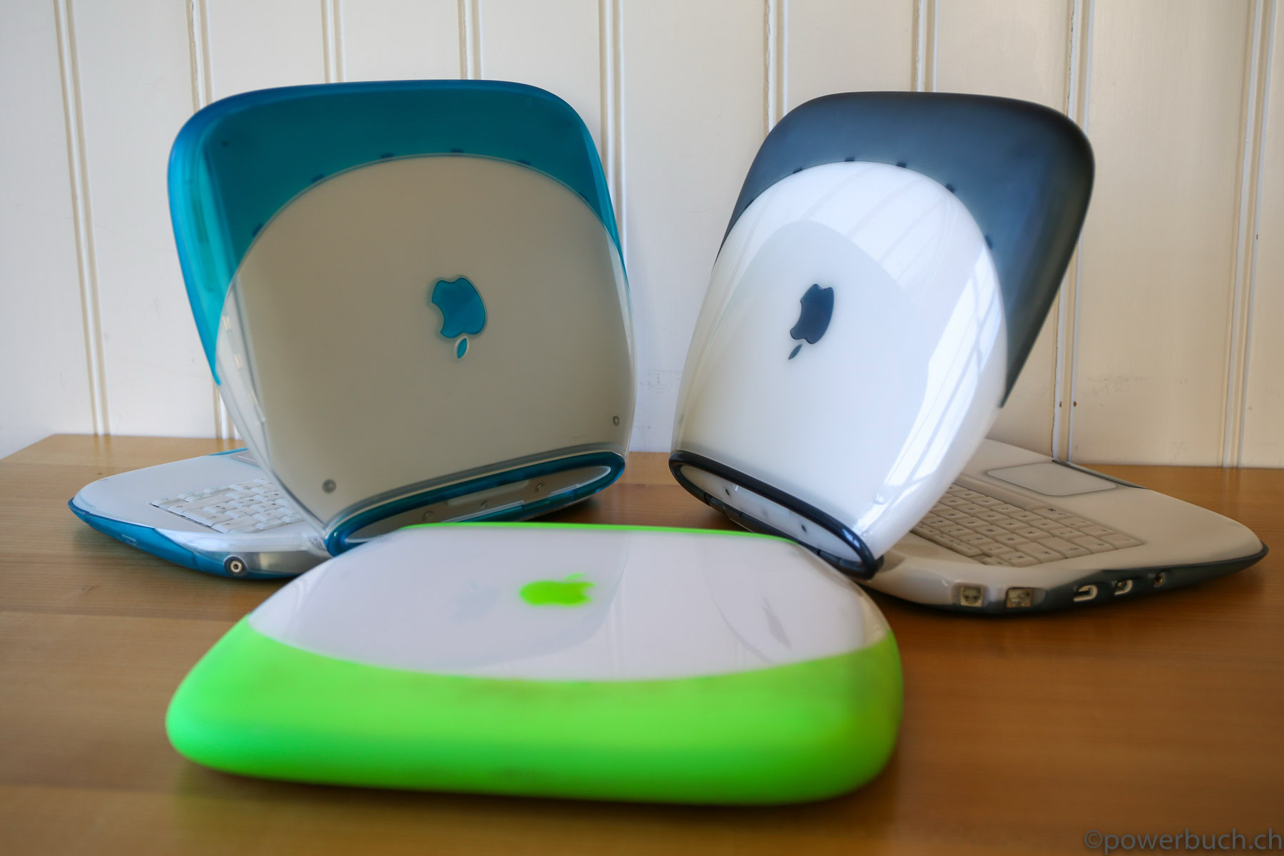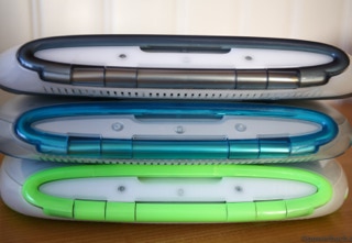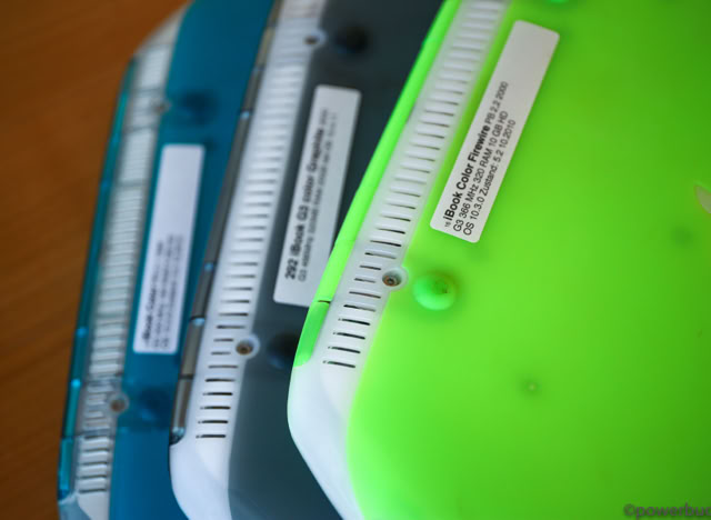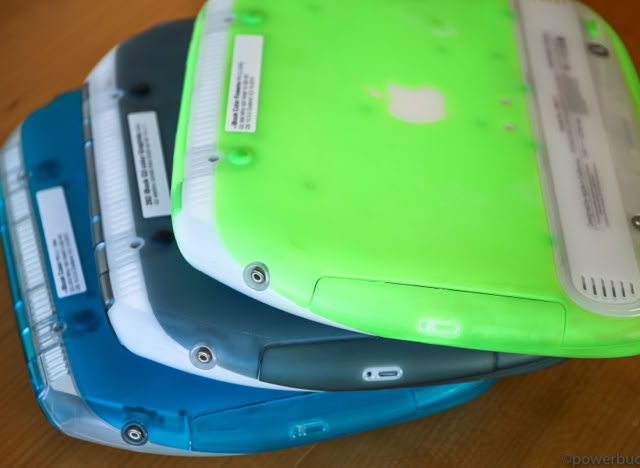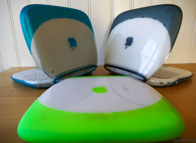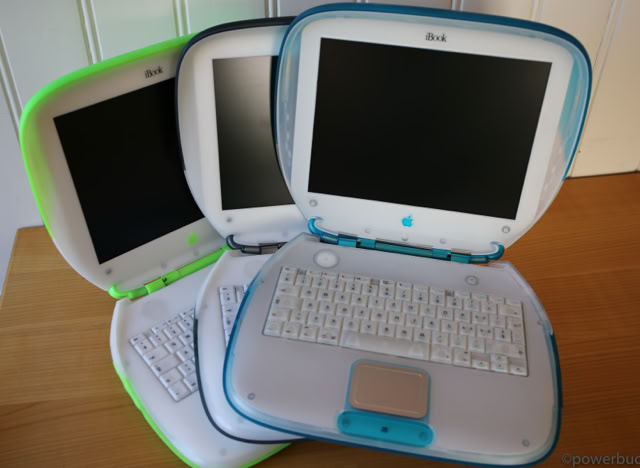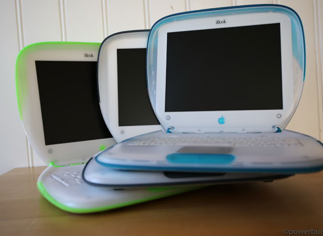 Das iBook kam in zwei Hauptmodellen und zwei Revisionen heraus. Das ursprüngliche iBook wurde im Juli 1999 angekündigt. Es wurde in den Farben Blueberry und Mandarine mit einem 300 MHz PowerPC G3-Prozessor, 32 MB RAM, einer 3,2 GB Festplatte, einem CD-ROM-Laufwerk mit Schubladeneinzug, einem 12-Zoll-LCD-Display mit 800 x 600 Pixeln und aktiver Matrix, einem 56k-Modem, einem USB-Anschluss, Ethernet, drahtlosem Netzwerk und einer Batterie mit einer Laufzeit von sechs Stunden angeboten. Der Preis betrug 1.600 $. Das war weit entfernt vom heutigen 999 $ teuren MacBook Air, aber damals war es volle 900 $ billiger als das Powerbook G3 der untersten Preisklasse. Sieben Monate später, im Februar 2000, fügte Apple der Produktpalette ein „Special Edition“-Modell hinzu. Für 1.799 US-Dollar wurde die CPU des iBook SE auf 366 MHz gesteigert, der RAM auf 64 MB verdoppelt und die Festplatte auf 6 GB fast verdoppelt. Das SE ging auch auf Bedenken hinsichtlich der grellen Farben des bestehenden Modells ein und wurde in Apples professioneller Farbe „Graphit“ angeboten, passend zum iMac DV SE und dem Power Mac G4. Nach über einem Jahr auf dem Markt erhielt das iBook im September 2000 endlich ein dringend benötigtes Upgrade. Die Basismodelle wurden auf 366 MHz Power PC 750 CX (G3)-CPUs aufgerüstet, die trotz ihrer höheren Taktfrequenzen nur geringfügig schneller waren als die 300 MHz PowerPC 750-CPUs, die sie ersetzten. Das aktualisierte iBook enthielt standardmäßig 64 MB RAM, hatte eine verbesserte Grafikkarte, verdoppelte den Videospeicher auf 8 MB, erhöhte die Laufwerksgröße auf 10 GB, fügte einen Firewire-Anschluss und einen Composite-Video-Ausgang hinzu und senkte den Preis um 100 $ auf 1.499 $. Die neuen iBooks kamen in einem tieferen Indigoblau und einem fast neonartigen KeyLime-Grün. Das SE-Modell wurde zur gleichen Zeit aktualisiert und verbesserte das Basismodell durch Hinzufügen eines 466 MHz PowerPC 750cx (G3) und eines DVD-Laufwerks. Das SE wurde sowohl in Graphit als auch in KeyLime angeboten. Der Preis blieb bei 1.799 $.