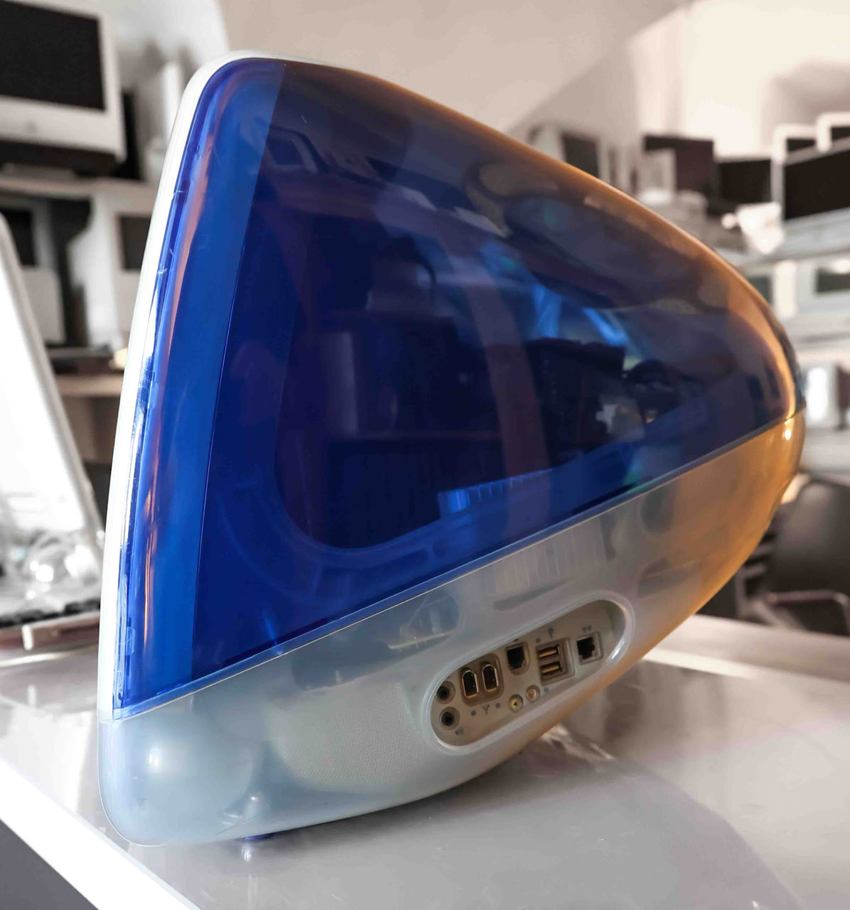 Der 1998 angekündigte iMac war Apples Computer für das neue Jahrtausend. Er war auf den Low-End-Markt ausgerichtet und mit Blick auf das Internet konzipiert. Apple positionierte den iMac als den originellsten neuen Computer seit dem ersten Mac von 1984 und hatte ein schickes neues Gehäusedesign mit durchsichtigem „Bondi Blue“-Kunststoff.