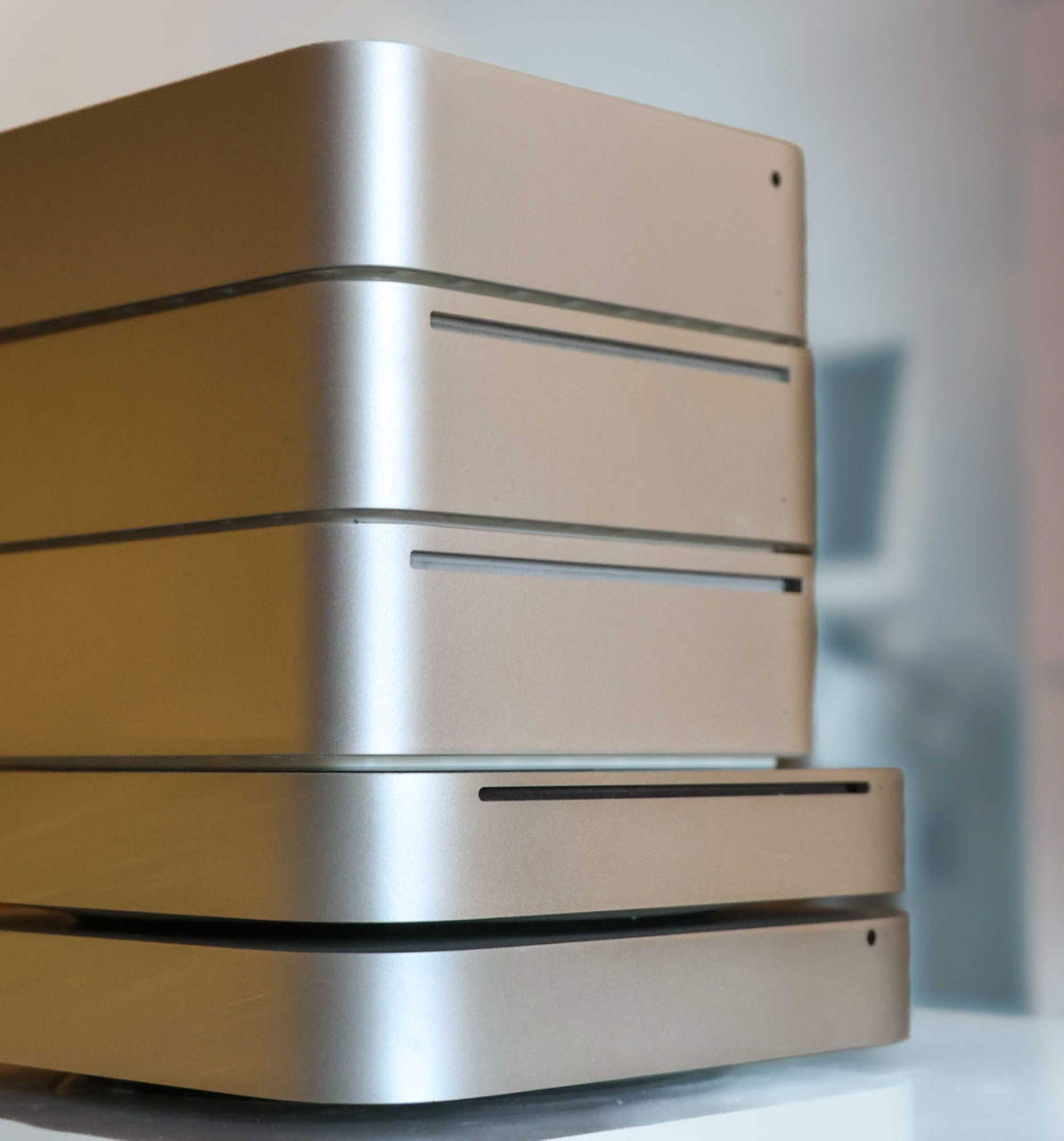 Der Mac Mini war Apples erster wirklicher Vorstoß in den Low-End-Markt und Apples erster Mac ohne Monitor seit über sechs Jahren. Basierend auf dem grundlegenden Logic Board-Design des eMac, packte der Mac Mini einen beeindruckenden Funktionsumfang in ein sehr kleines Paket.