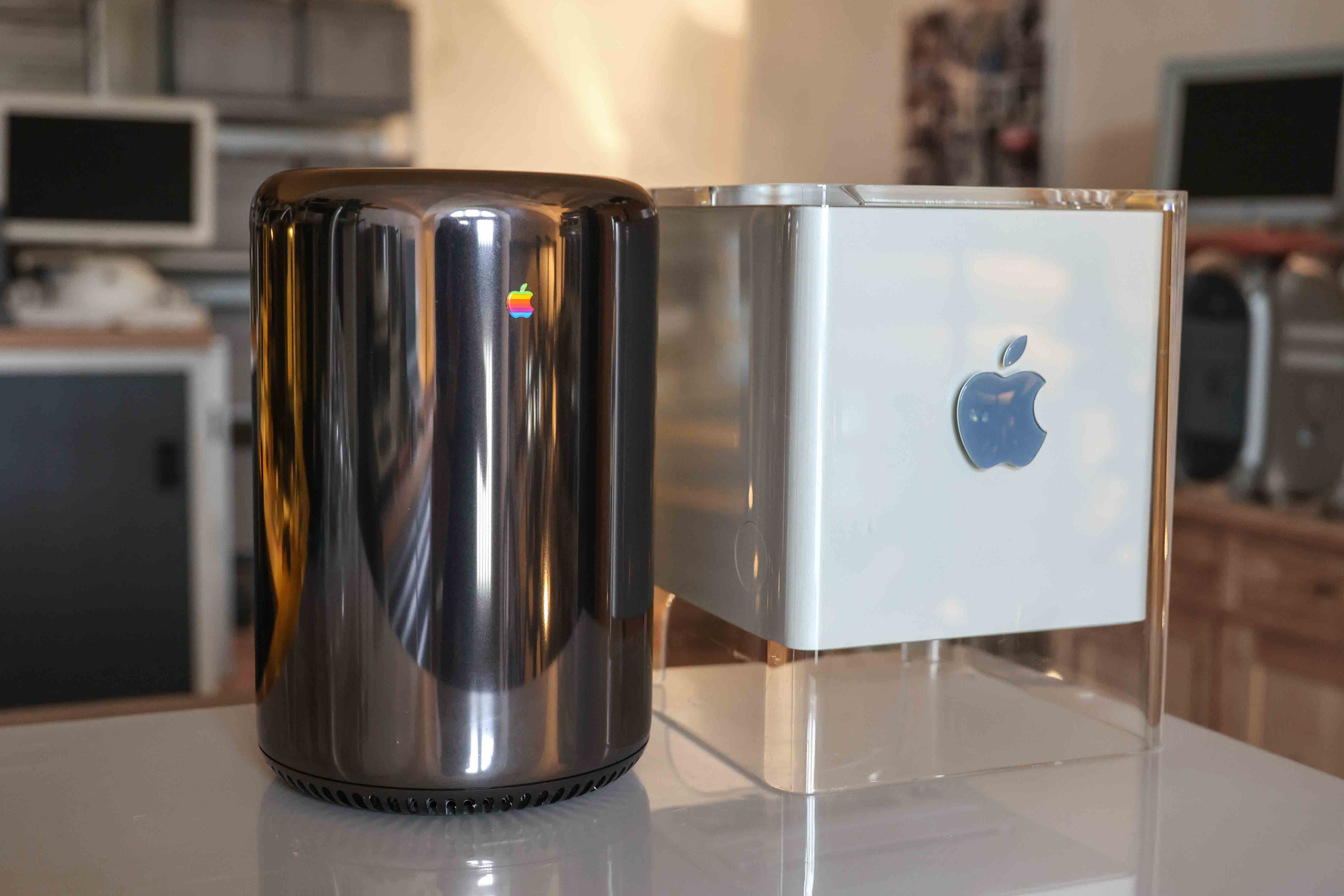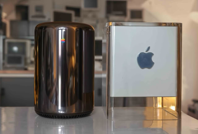 Apple hatte 2013 einen komplett neu gestalteten Mac Pro vorgestellt. Der Mac Pro 2013 wurde mit einem überarbeiteten Gehäusedesign vorgestellt: einem polierten silbernen Aluminiumzylinder, der um einen zentralen Wärmeableitungs-kern herum gebaut war und von einem einzelnen Lüfter belüftet wurde, der Luft von unter dem Gehäuse durch den Kern hindurch und oben aus dem Gehäuse heraus zog. Der Mac Pro verfügte über eine grundlegend neu gestaltete Konfiguration der Anschlüsse, mit einem HDMI 1.4-Anschluss, zwei Gigabit-Ethernet-Anschlüssen, sechs Thunderbolt 2-Anschlüssen, vier USB 3-Anschlüssen und kombinierten digitalen optischen Mini-TOSlink-/analogen 1⁄8"-Stereo-Minibuchsen für Tonein- und -ausgang. Die Thunderbolt 2-Anschlüsse unterstützen bis zu 36 Thunderbolt-Geräte (sechs pro Anschluss) und konnten bis zu 3 gleichzeitige 4K-Displays unterstützen. Dieses Design erforderte 2 GPUs, um die 7 Displayausgänge (HDMI und 6 Thunderbolt) zu unterstützen. Der MacPro machte es überflüssig, Festplatten auszutauschen, indem er auf die vier 3,5-Zoll-Laufwerksschächte zugunsten eines proprietären PCIe-Flash-Speichers verzichtete. Außerdem war es nicht mehr möglich, PCIe-Karten intern hinzuzufügen, sodass der RAM das einzige zu erweiternde Teil war. Das E/A-Panel wurde beleuchtet, wenn das Gerät erkannte, dass es bewegt wurde, damit der Benutzer die Anschlüsse leichter erkennen konnte.