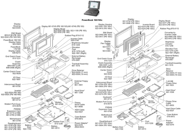 Dazu gehört eine gründliche Reinigung des Mainboards mit normalem Wasser und Küchenreiniger. Alle Kondensatoren müssen ausgetauscht werden. Das gilt oft auch für die Netzteile; die Rifa-Kondensatoren müssen in jedem Fall ersetzt werden. Man möchte diese unangenehme Überraschung nur einmal erleben. Die Backup-Batterien müssen entfernt werden, selbst bei den Powerbooks, die oft kleine, flache, auslaufgefährdete Batterien eingebaut haben. Bei den Powerbooks müssen ausserdem die Nickelbatterien aus dem Batteriefach entfernt werden. Die Kunststoffgehäuse stellen eine Herausforderung dar, da der Kunststoff nach 30 Jahren spröde und brüchig geworden ist. Bei den Powerbooks sind auch die Scharniere hart geworden, sodass die Schrauben im Kunststoff brechen. Vergilbter Kunststoff lässt sich mit Wasserstoffperoxid und UV-Licht auffrischen, der dunkle Kunststoff der Powerbooks jedoch nicht. Die farbigen TFT-Displays können Essigsäure-Syndrom entwickeln. Deshalb ist mein Zimmer klimatisiert, bei 18–22 Grad und 35 % Luftfeuchtigkeit. Ich bin also ständig auf der Suche nach Ersatzteilen.