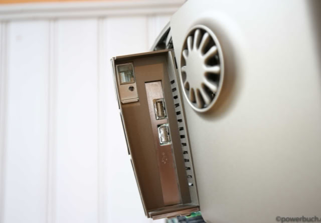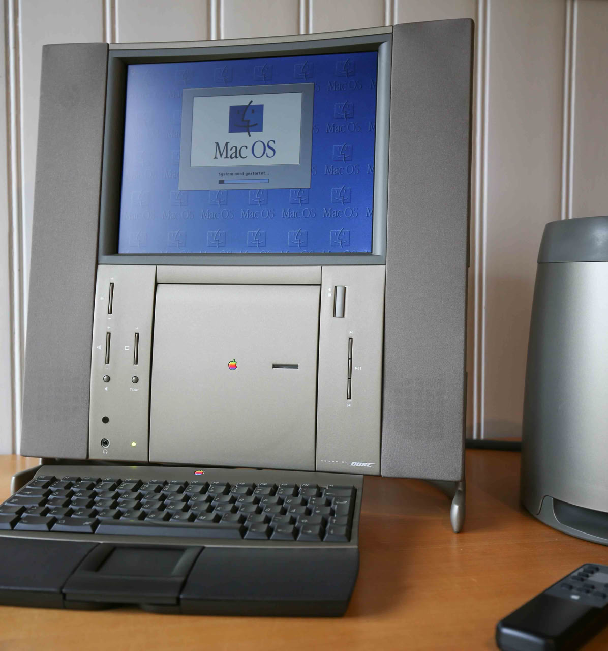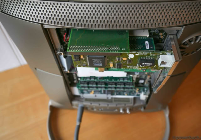 Die Version hier wird mit einer G3-Upgrade-Karte von Sonnet mit 400 MHz und einer Ethernet- und USB-PCI-Karte betrieben. Die Festplatte wurde durch eine 16 GB Compact Flash-Karte und Mac OS 9.1 ersetzt.